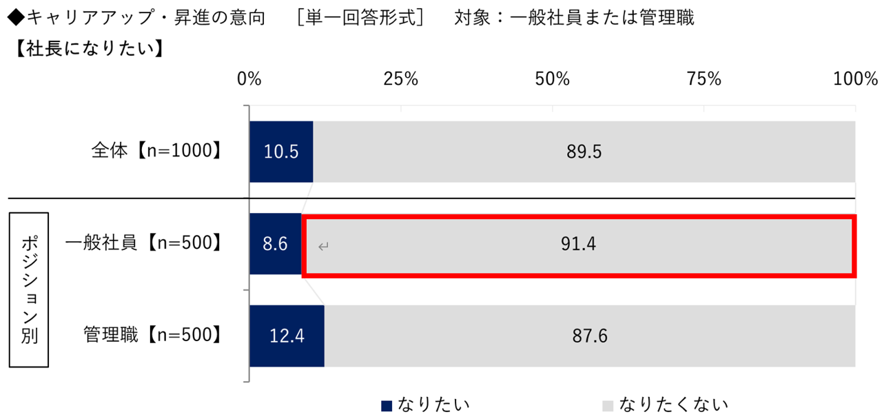一般社員の90%超が「社長になりたくない」、同79%が「管理職になりたくない」と回答