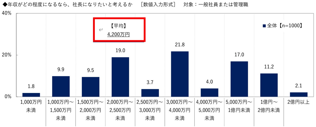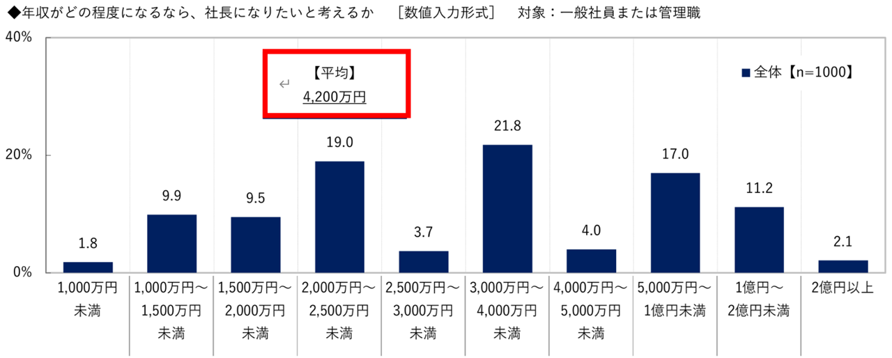 社長職に就くとした場合の希望平均年収は「4,200万円」