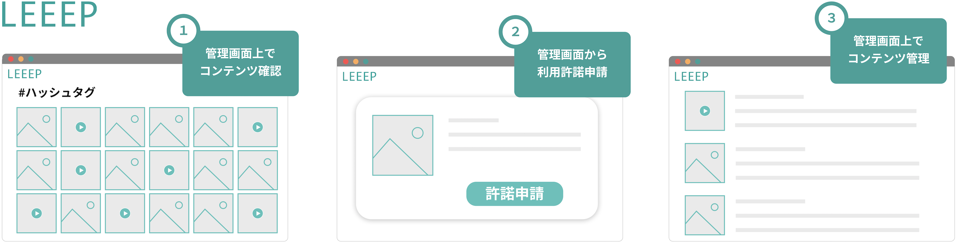 利用許諾やコンテンツ管理など、日々の業務をLEEEPで効率化!