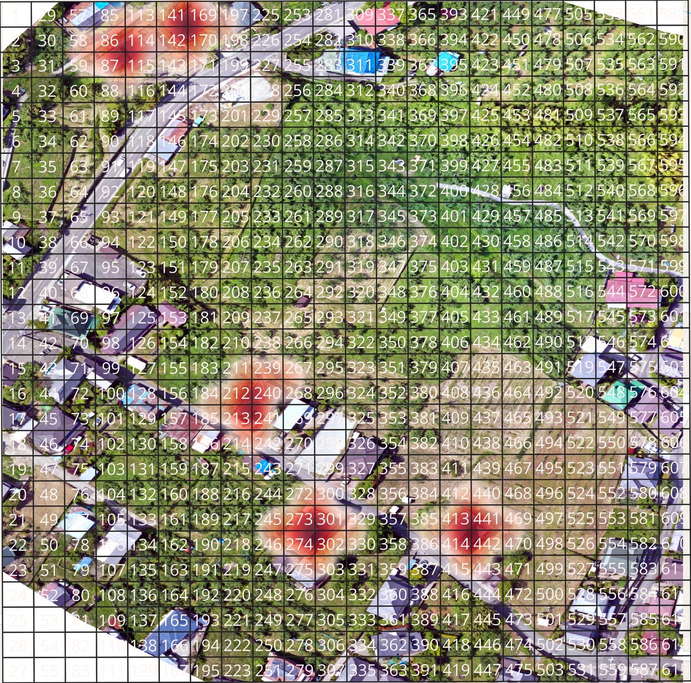 地図上をメッシュ化することによって、救助隊員への伝達も容易に可能です。得られたデータはCSV出力も可能で、そのデータ(位置情報)を使い、別のドローンによる捜索活動も可能となります。