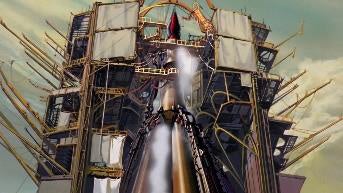 「今回のデザインに関してはまず初めに考えたのは『王立宇宙軍 オネアミスの翼』の世界観に沿った未来、衛星軌道上に建設された宇宙飛行士を顕彰するモニュメント兼ミュージアムであると言うことでした。お客さんは無重量下で浮遊しながら自由に見て歩ける……。ドッキングポートを縦に並べてぐるりとアンテナフレームで囲んで「エントランス」としてみました。王家の紋章と王直筆の扁額がお出迎えです。最上階の天辺には飛行士達を導く「スピードの女神像」が天を指しています。」