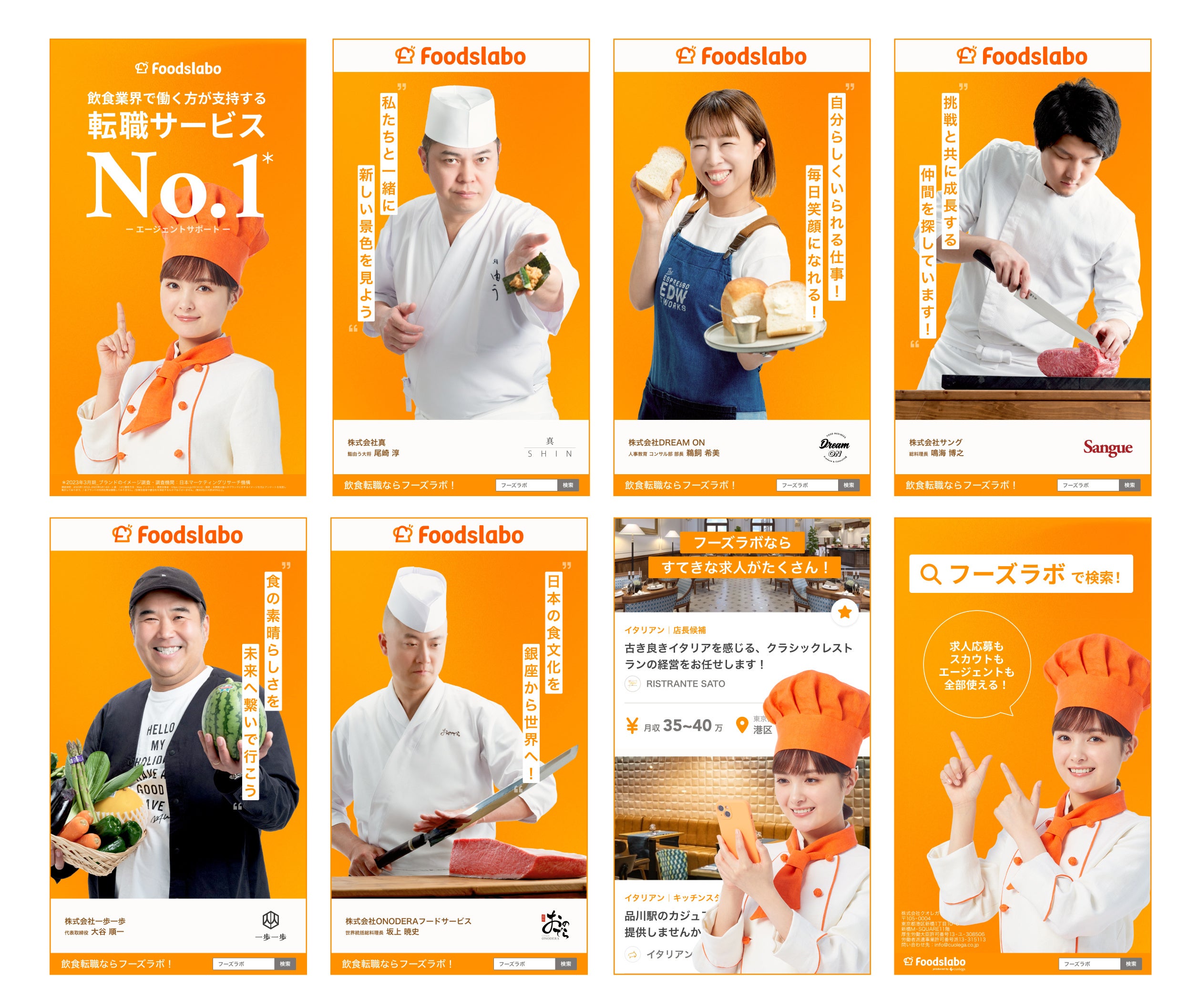 「FoodsLabo」は、“ 飲食店スタッフが選ぶ転職エージェントNo.1 ”*とされる『食』にフォーカスした食産業特化型転職支援サービスで、理念型の求人を多く取り扱う完全成果報酬型採用DXプラットフォームです。「FoodsLabo」のイメージカラーであるオレンジ色は、見る人のやる気を掻き立て、ポジティブに導く色です。明るく温かい雰囲気が、飲食業界の盛り上がりや、人と人との繋がりを表現しています。
