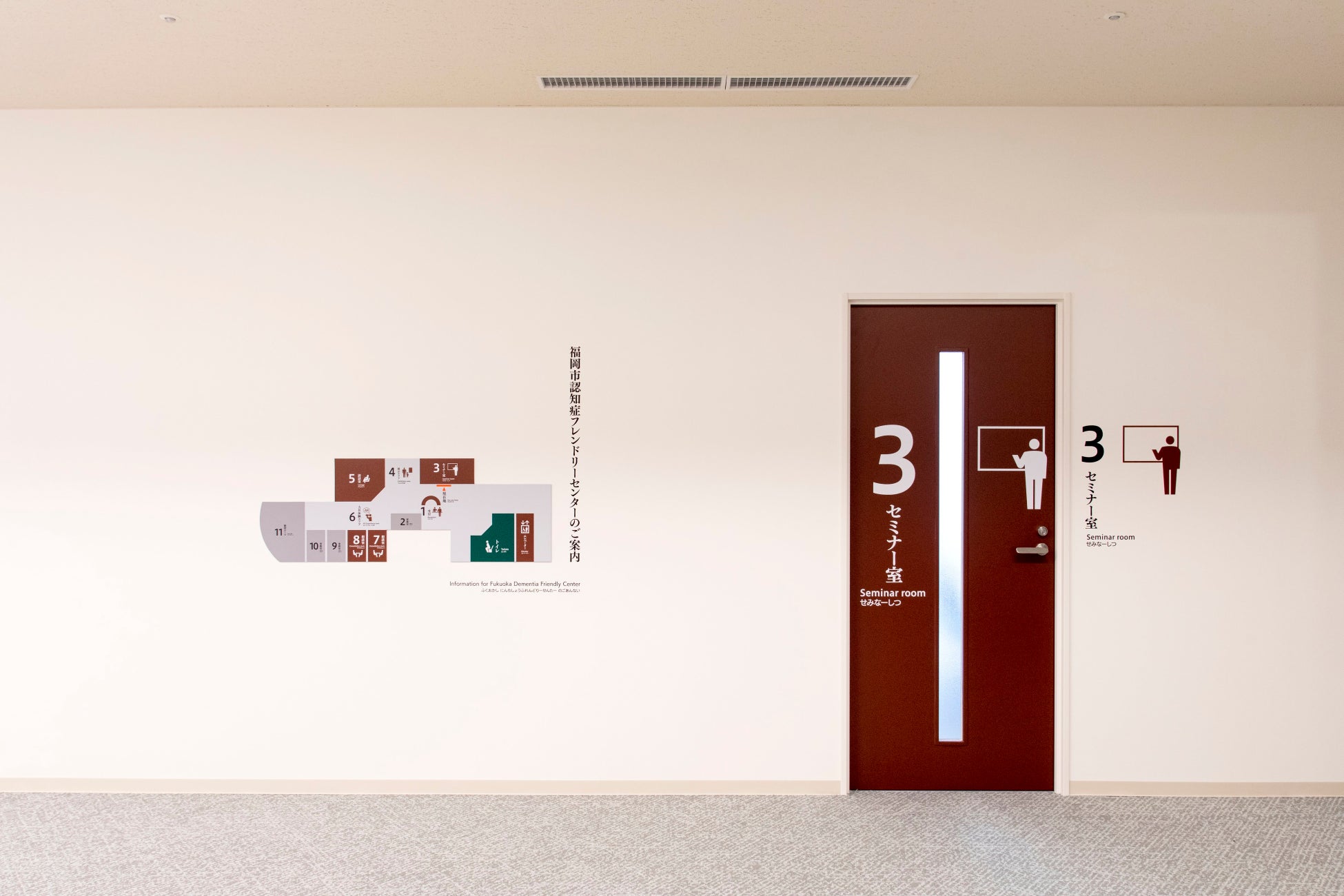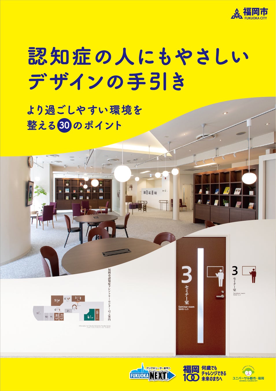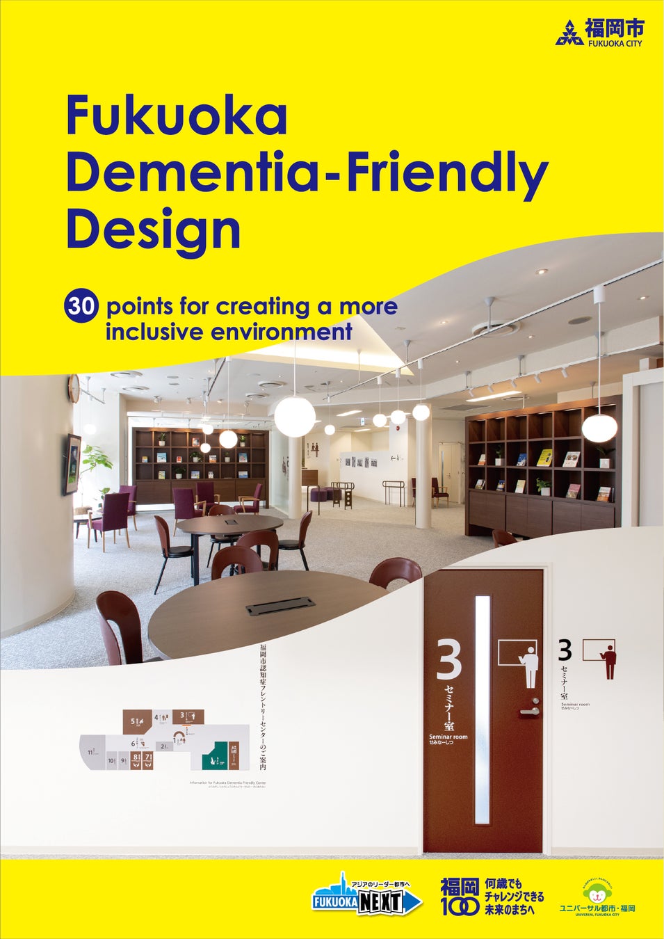 (注1)センターの内装に導入された「認知症の人にもやさしいデザイン」の手引きの改訂版である第2版が2023年9月に発表になりました。手引き第1版に引き続き手引き第2版も日本語版、英語版ともに弊社が受託し、作成いたしました。福岡市のホームページから無料でダウンロードすることができます。ご興味のある方は以下のリンクからお願いします。