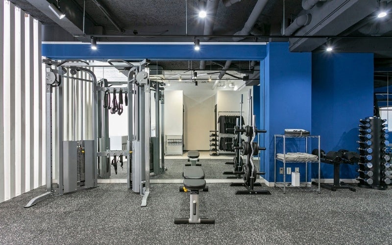 パーソナルトレーニングジムの多くが小規模テナントやマンションの1室などの個室で運営されているなか、当ジムは洗練された内装の広々としたオープンスペースで充実のトレーニング設備をご用意しております。女性や初心者のお客様でも安心してトレーニングができる空間となっております。