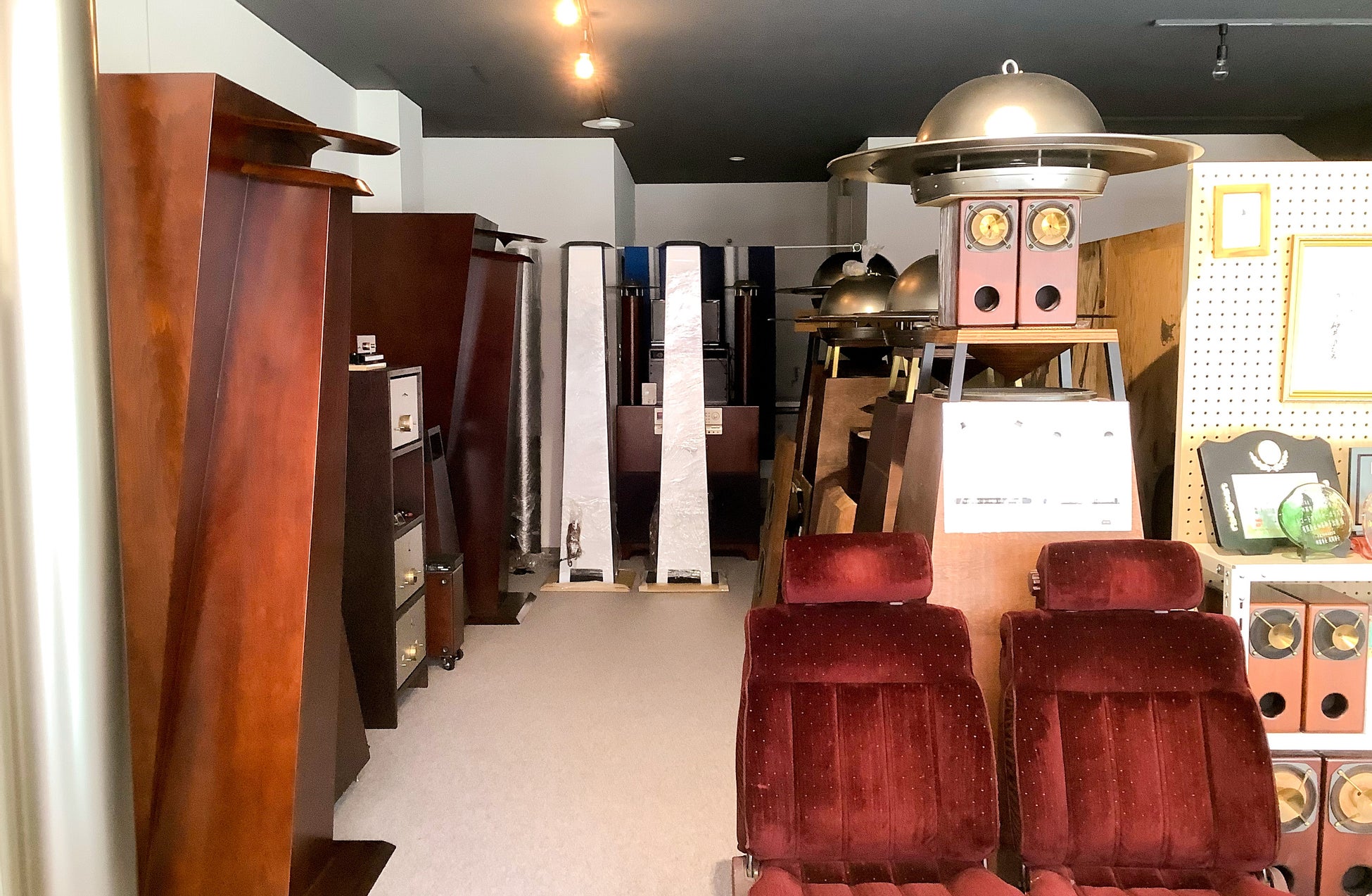 旧モデルから現行モデルまで、製品をゆったりとご覧いただける開放的な空間となっております。設置位置の違いで音の伝わり方がイメージしやすい展示となっており、空間演出のご参考にして頂けます。