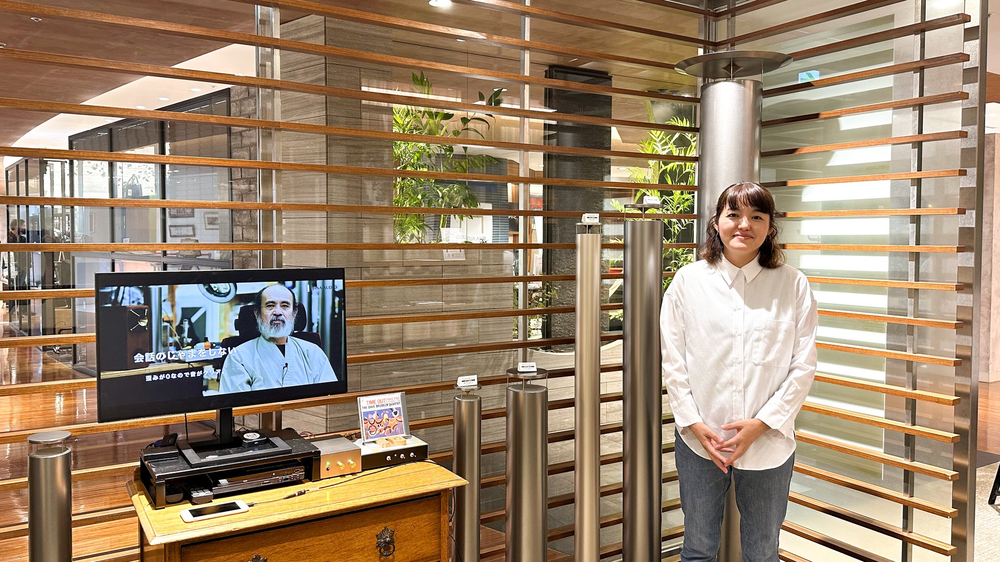 新ショールームでは設置位置の違いで音の伝わり方がイメージできる展示をしており、店舗や部屋全体の空間演出のご参考にして頂けます。