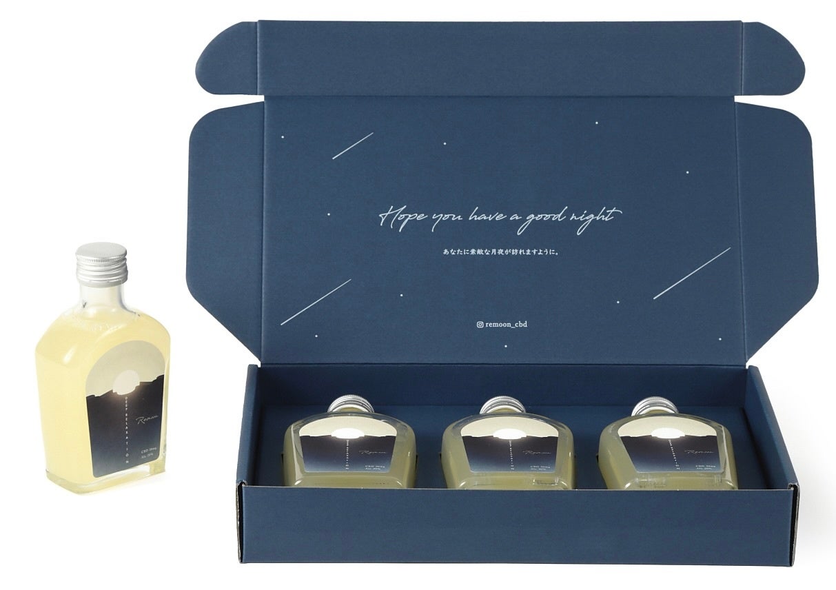 「素敵な月夜を繰り返しお届けしたい」という想いからRemoonと名付けました。ラベルデザインは、CBDによるリラックス効果でぐっすり眠り、翌朝スッキリ目覚める時間をイメージしています。