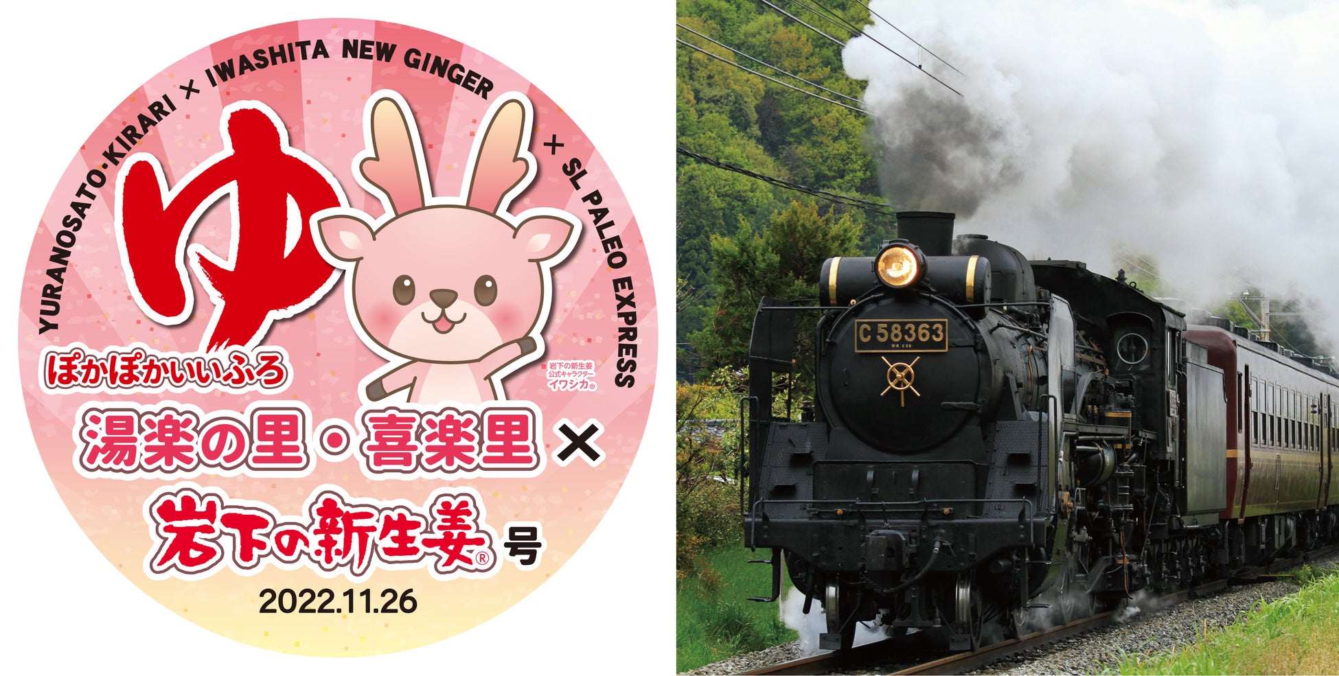 「ぽかぽかいいふろ 湯楽の里・喜楽里×岩下の新生姜号」運行