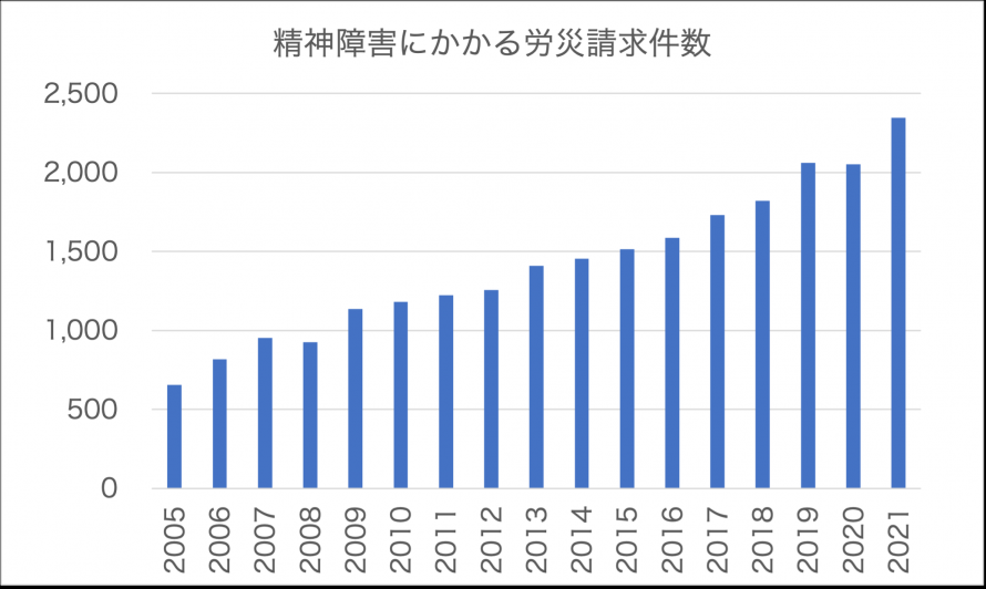 従業員のメンタルヘルス問題はCOVID-19の流行を経てより顕在化しました。日本国内においてもコロナ禍前後でうつ症状の人が2倍以上になったり、精神障害による労災の請求件数が大幅に増加するなど、より深刻な問題となりつつあります。