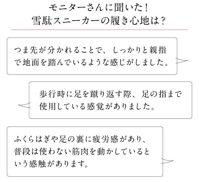 リフトでは、足の権威でもある下北沢病院さまのご協力を得て、雪駄スニーカーによるモニター検証を行いました。