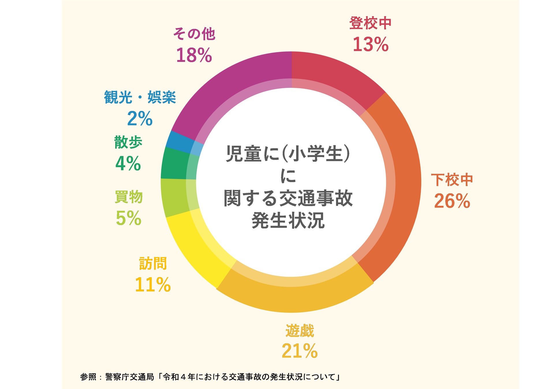 歩行中児童の死者・重傷者のうち約3分の1が登下校中の交通事故によるものであり、特に5月から6月にかけて、歩行中児童の死者・重傷者が増加する傾向にあります。