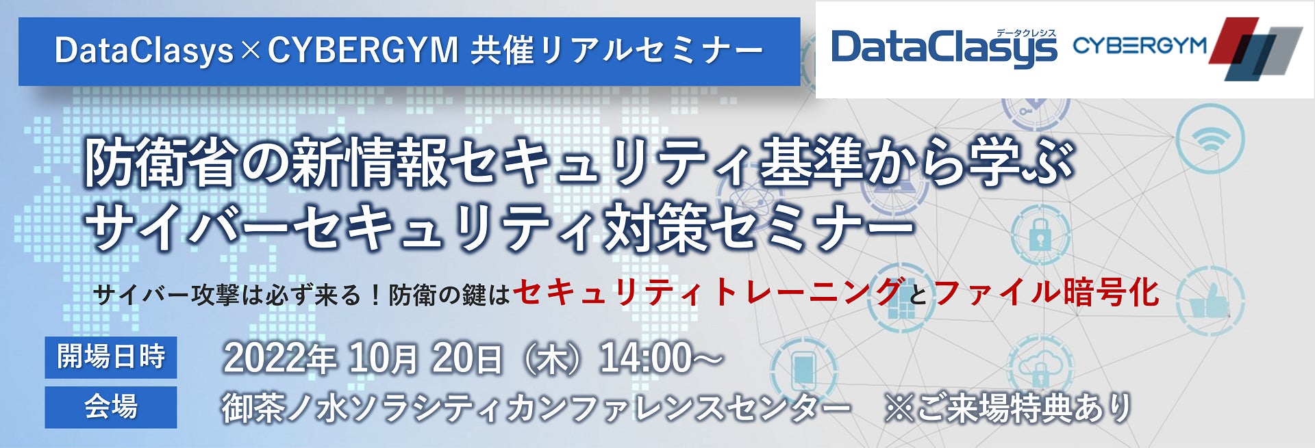 【10/20(木)開催】防衛省の新情報セキュリティ基準から学ぶサイバーセキュリティ対策セミナー / DataClasys × CYBERGYM共催リアルセミナー