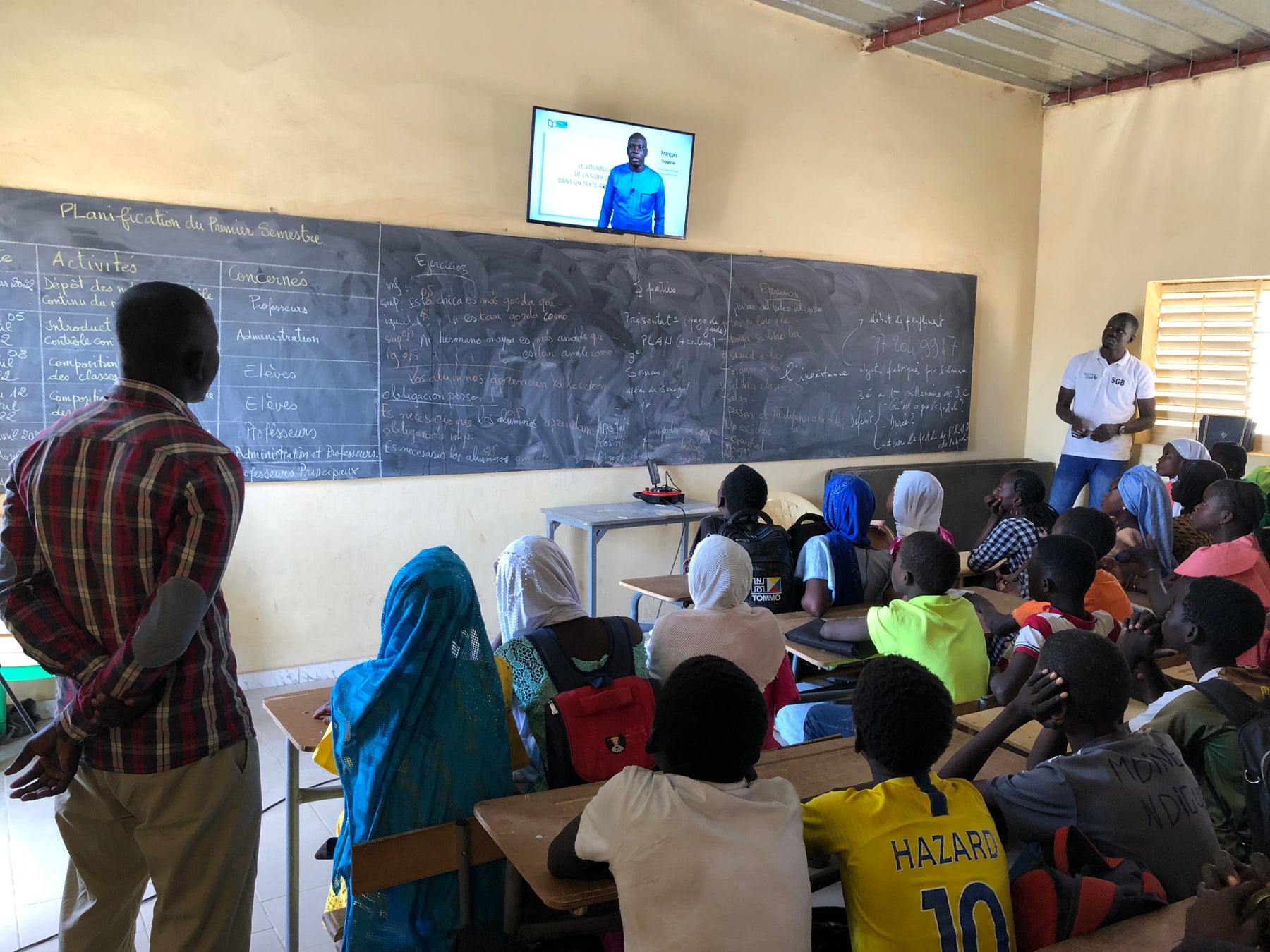 そこで2021年、高速通信の無い地域でも動画やオンラインによるコミュニケーション、スマホなどのアプリケーションの使用が可能な「TUMIQUI Power Digital Solution(ツミキ・パワー・デジタル・ソリューション)」を立案。同年3月には関西電力様、セネガル・サンジャラ市協力の元、市内の未電化・未電波地域にある学校施設3カ所でのオンライン双方向授業のテスト運用を実施、再生エネルギーを使ったデジタルインフラの構築に成功しました。〔1〕