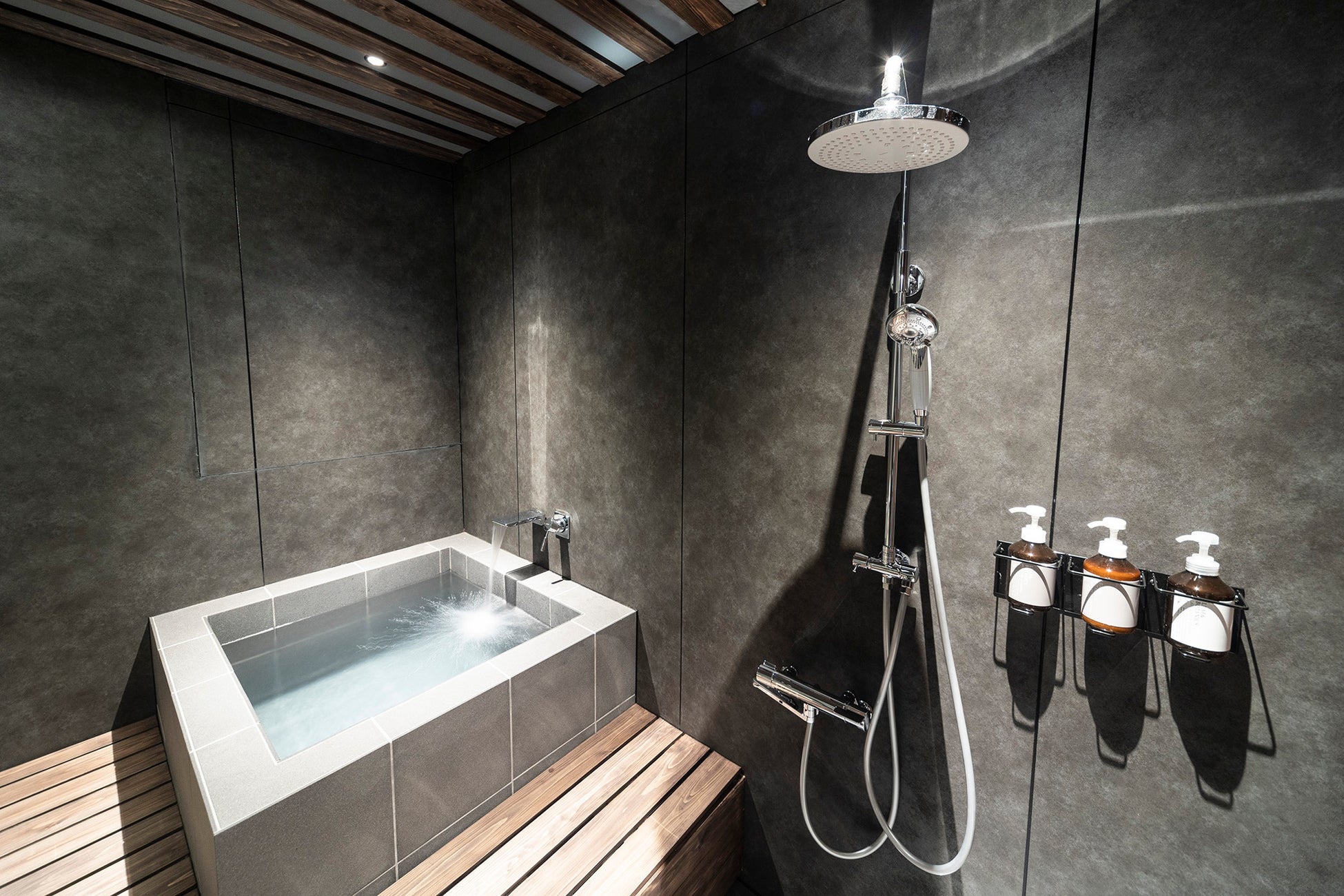 水風呂は毎回水を入れ替える方式の為、一般的な公衆浴場ではできない、サウナを出てからそのまま水風呂につかるといったことも可能です。本施設の水風呂は氷を使った冷水方式の為、お部屋の氷ストッカーから氷を自由に追加して、お好みの水温に調整することが可能です。