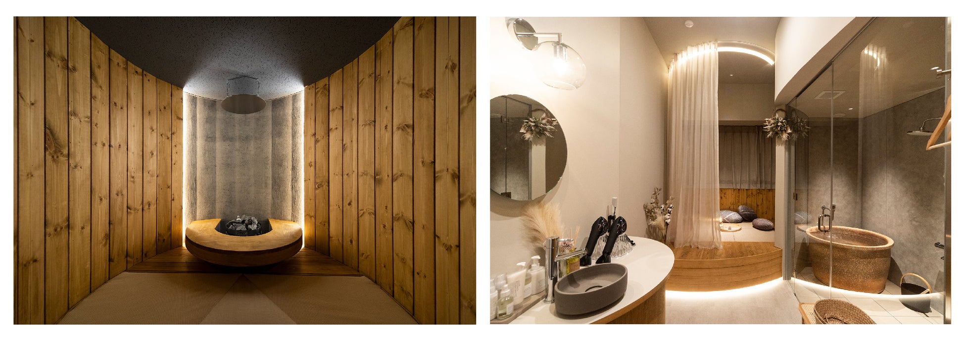 多様なコミュニケーションをコンセプトにした「▢、◯、△」3つの異なるデザインのサウナ空間