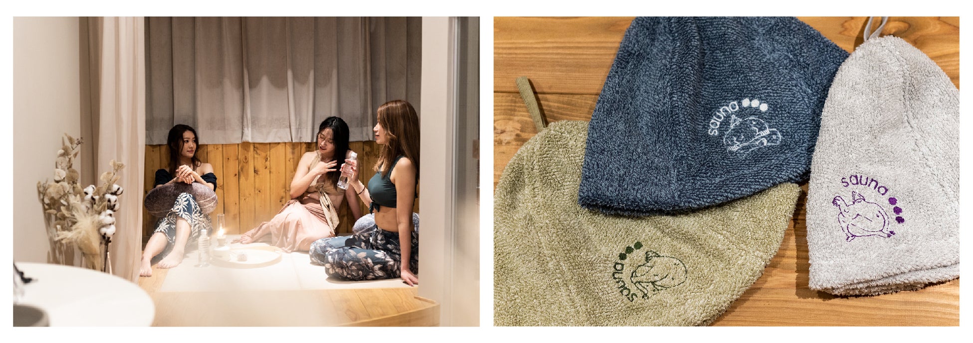 手ぶらでも来られる様に、オリジナルのサウナハット&サウナウェアのレンタルもご用意(別途有料オプション)
