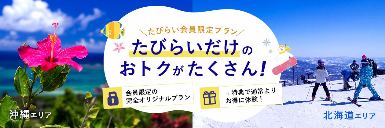 たびらい会員しか体験することができない完全限定プラン!他にはないたびらい会員限定の特別なプランをお楽しみください。