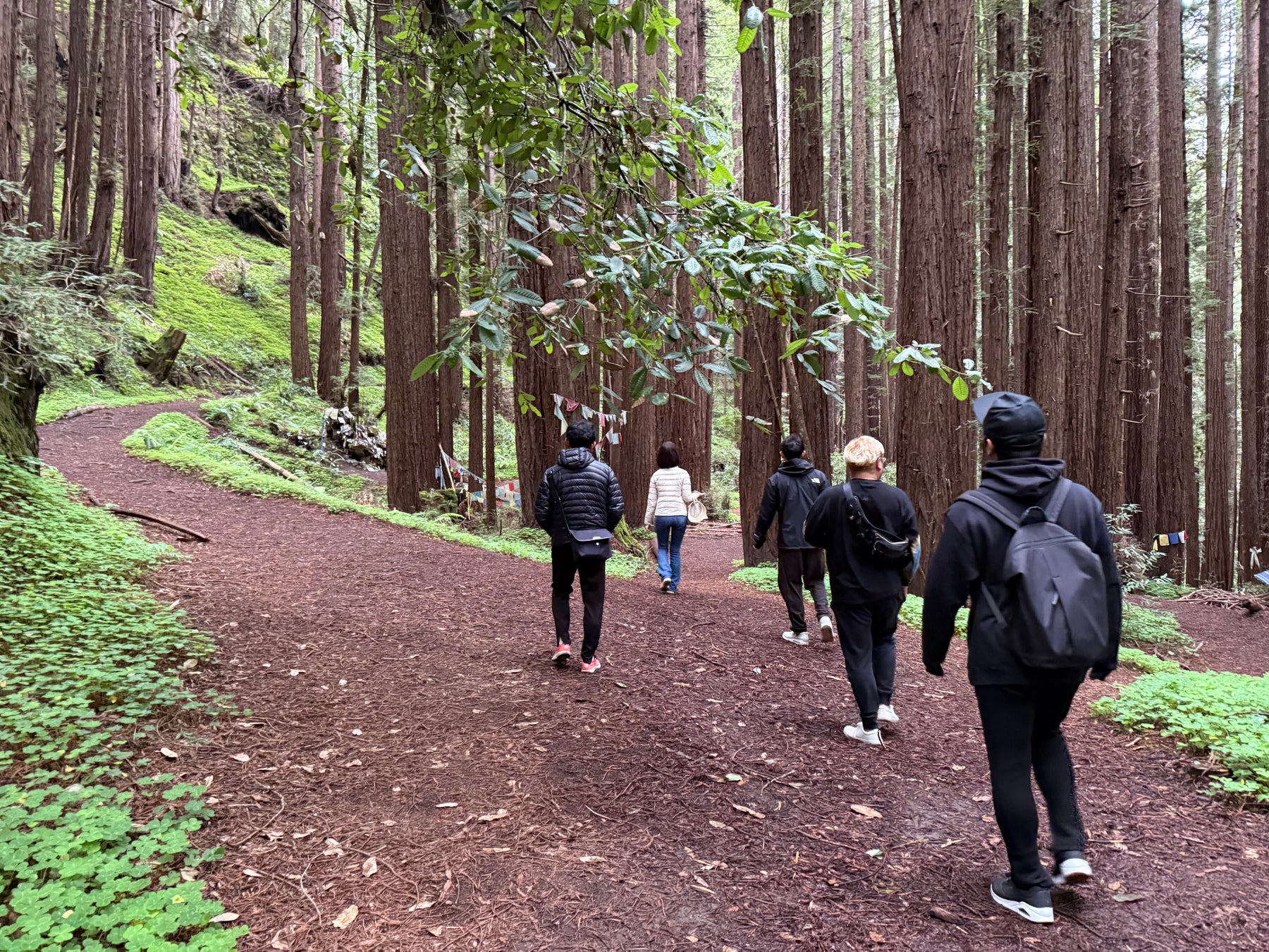 レッドウッドの森やカーメルの海を舞台にしたマインドフル・ウォーキングを通じて、「考える」から「感じる」へとシフトし、思考を手放して「今ここ」に立ち返る体験をしました。