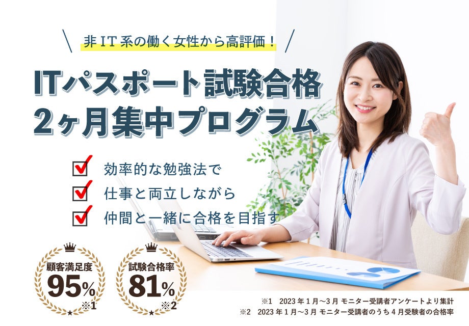 満足度95%、合格率81%、50代のIT初学者も合格できた「ITパスポート試験合格2ヶ月集中プログラム」2期生募集!
