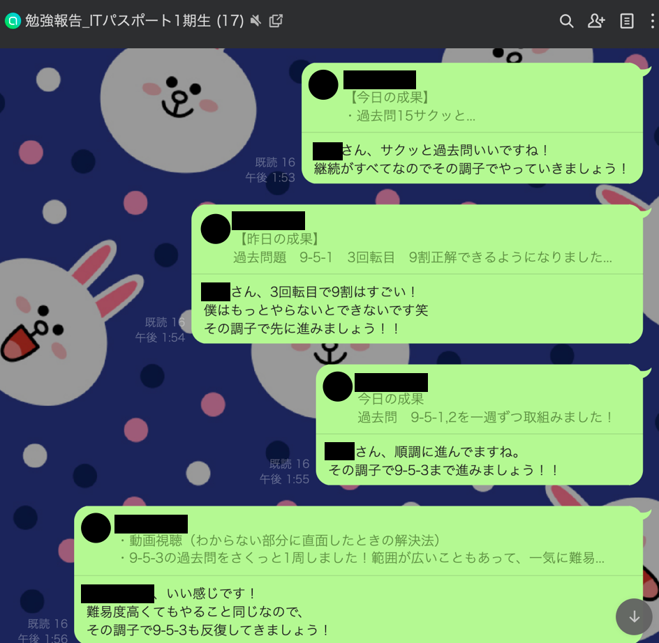 勉強報告ができる参加者専用LINEオープンチャットへ招待します。