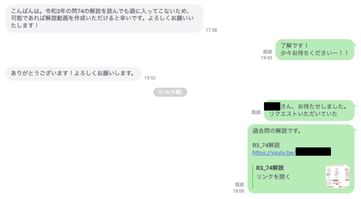 また、過去問の点数報告やアドバイスも個別に可能です。