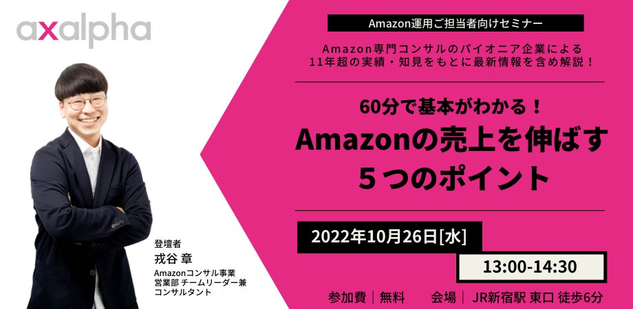 Amazon専門コンサルティングを展開するアグザルファ、無料セミナー「60分で基本がわかる!Amazonの売上を伸ばす5つのポイント」を10月26日(水)開催