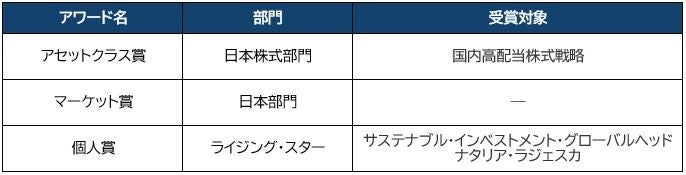「国内高配当株式戦略」の日本株式部門での受賞をはじめ計3部門で受賞