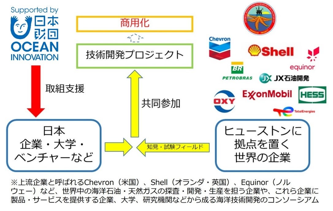 上流企業と呼ばれるChevron(米国)、Shell(英国・オランダ)、Equinor(ノルウェー)、ExxonMobil(米国)、TotalEnergies(フランス)、Petrobras(ブラジル)、Oxy(米国)、JX 石油開発(日本)など、世界中の海洋石油・天然ガスの探査・開発・生産を担う企業や、これら企業に製品・サービスを提供する企業、大学、研究機関などから成る海洋技術開発のコンソーシアムを指します。*1