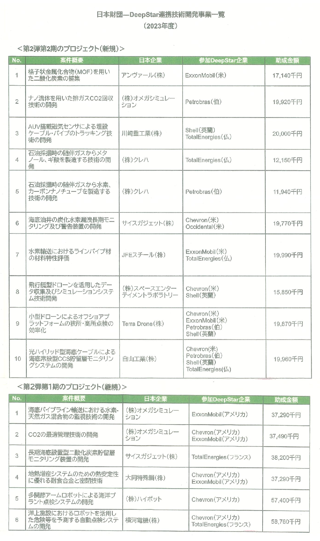 2.日本財団は日本企業の取り組みを支援、DeepStarは海洋開発分野の知見・試験フィールドを日本企業等に提供