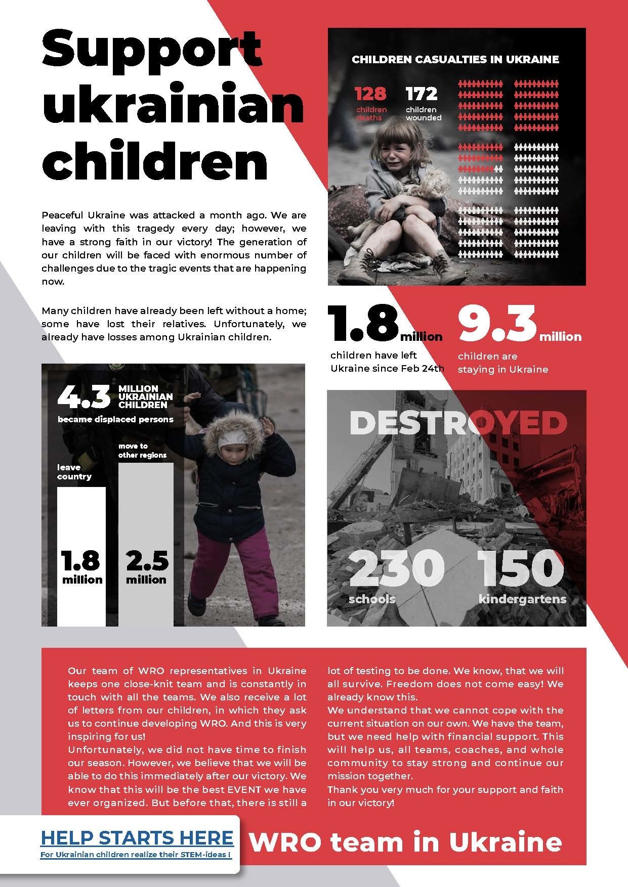 WROウクライナは、戦争終結後にできるだけ早く子どもたちのためのSTEMA教育環境を復活させること、およびWRO国際大会への参加を可能とするための基金を設立しました。そして、日本にも支援の依頼がありました。