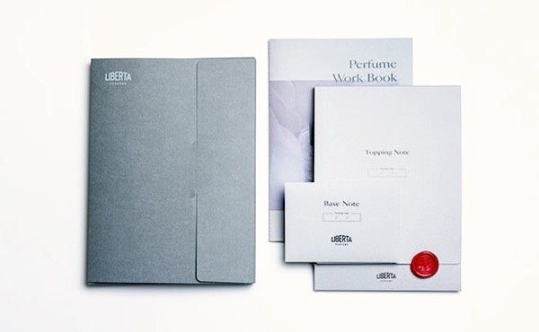 リベルタパフュームの専属調香師とのカウンセリングでは、ワークブックを使って香りのコンセプトを決め、調香師と同じ試香紙(ムエット)を嗅ぐことで、自分の香りの好みに合わせた香りを依頼することができます。