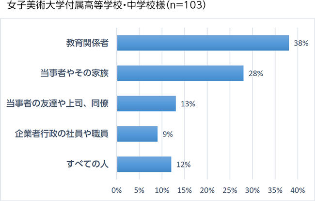 女子美術大学付属高等学校・中学校様では、日頃より多岐にわたる教員研修に積極的に取り組んでこられ、過去にも発達障がい関連の研修も行った背景があり、今回は質疑応答の時間を長めに取りたいという要望を承りました。