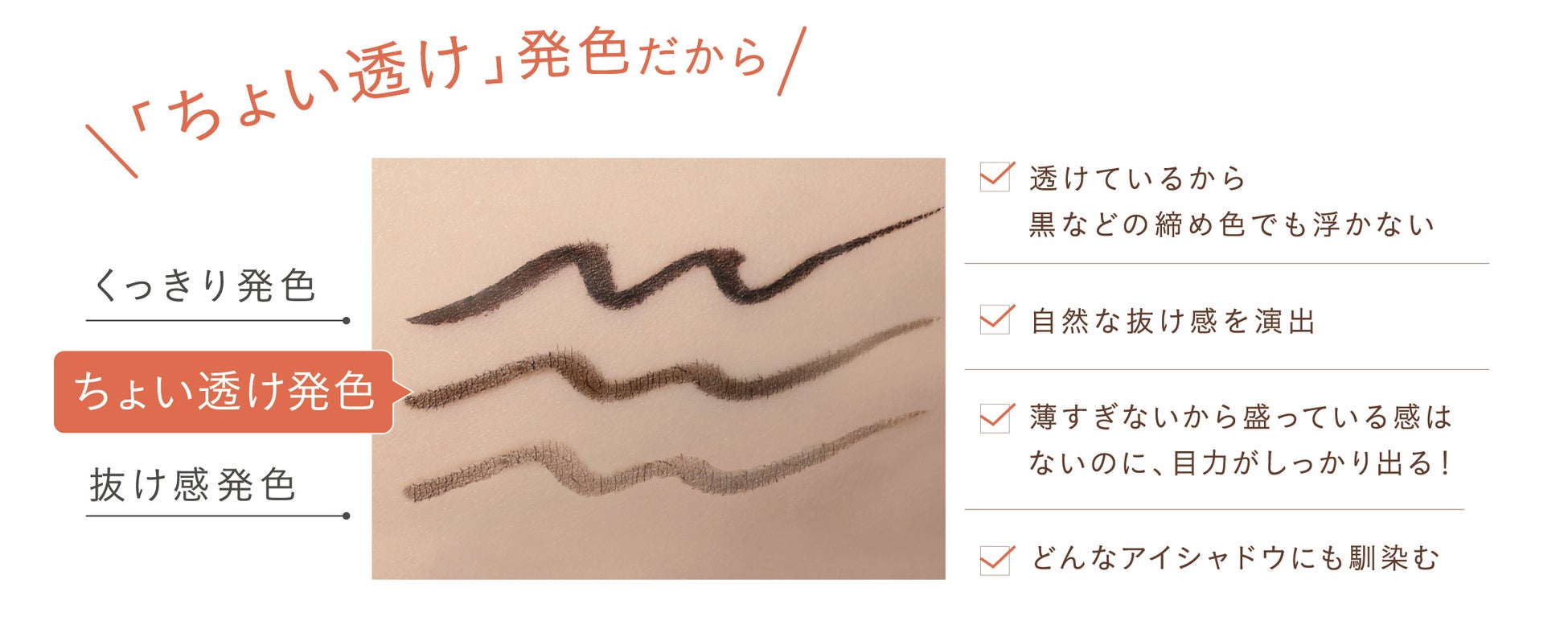 「ちょい透け」発色でやさしい目力をプラス。かわいげのある目元に仕上がる、深みのあるシアーなブラウン。