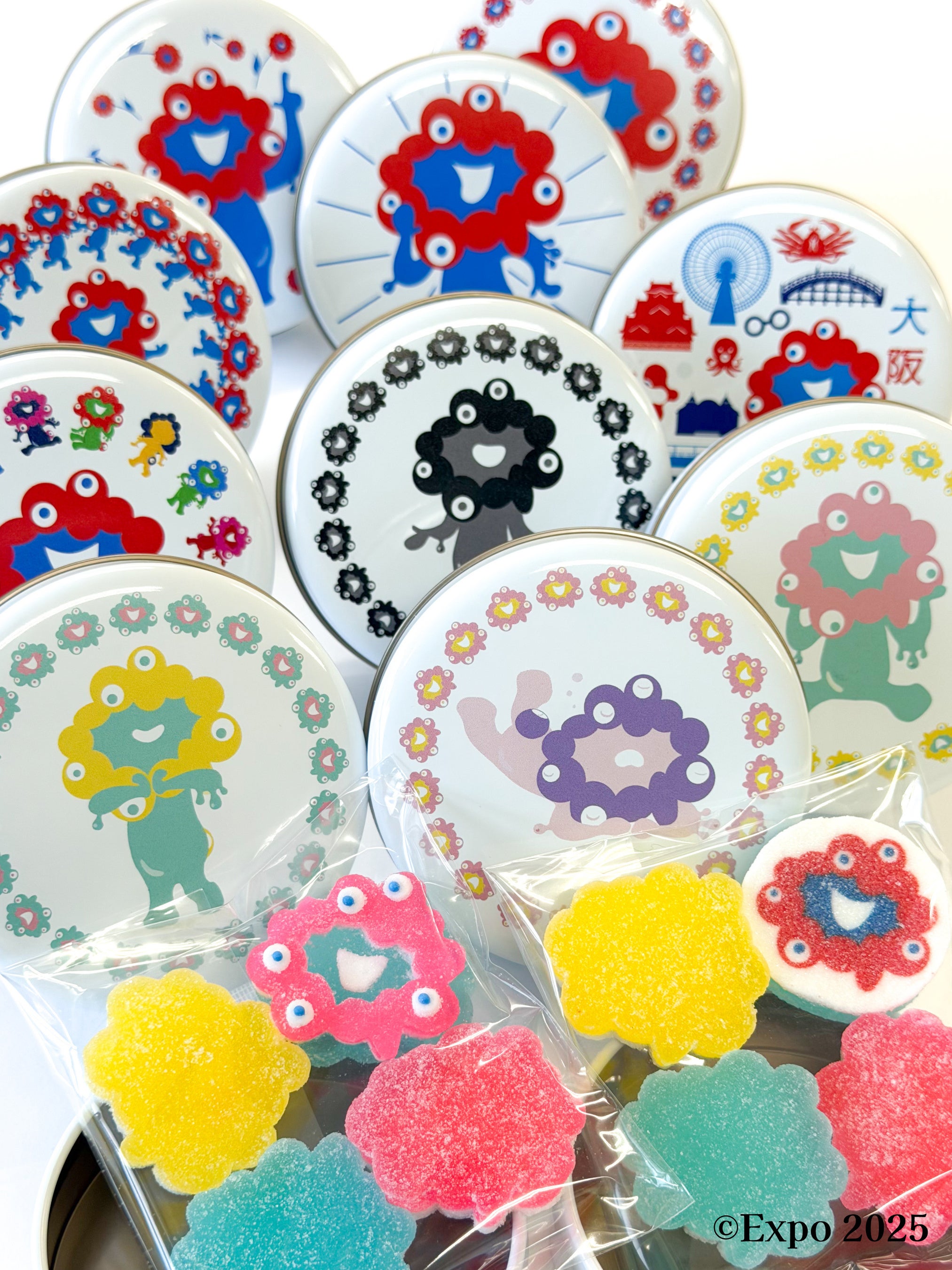 黒いミャクミャクやカラフルなミャクミャクなどの可愛い柄と缶、中には美味しいゼリー。