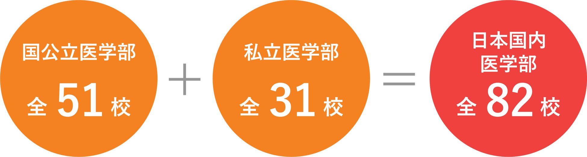【国公立大学医学部】北海道大学、札幌医科大学、旭川医科大学、東北大学、山形大学、秋田大学、福島県立医科大学、弘前大学、東京大学(理科三類)、東京科学大学、筑波大学、千葉大学、横浜市立大学、山梨大学、群馬大学、金沢大学、新潟大学、富山大学、福井大学、名古屋大学、名古屋市立大学、浜松医科大学、岐阜大学、信州大学、京都大学、大阪大学、神戸大学、大阪公立大学、三重大学、京都府立医科大学、奈良県立医科大学、和歌山県立医科大学、滋賀医科大学、広島大学、島根大学、岡山大学、山口大学、鳥取大学、徳島大学、愛媛大学、高知大学、香川大学、九州大学、長崎大学、佐賀大学、熊本大学、宮崎大学、鹿児島大学、大分大学、琉球大学、防衛医科大学校