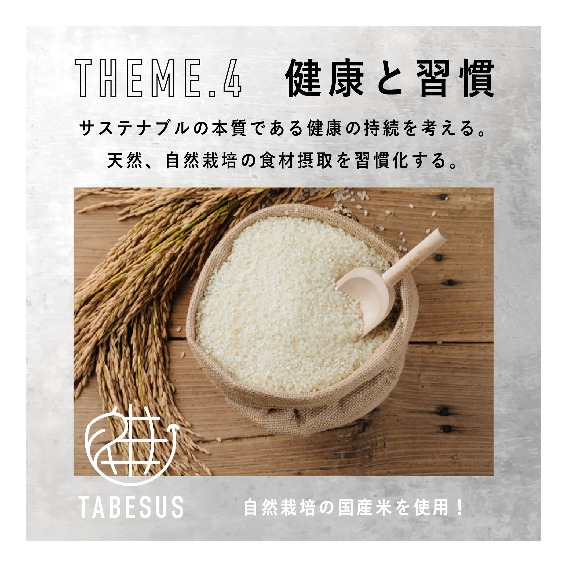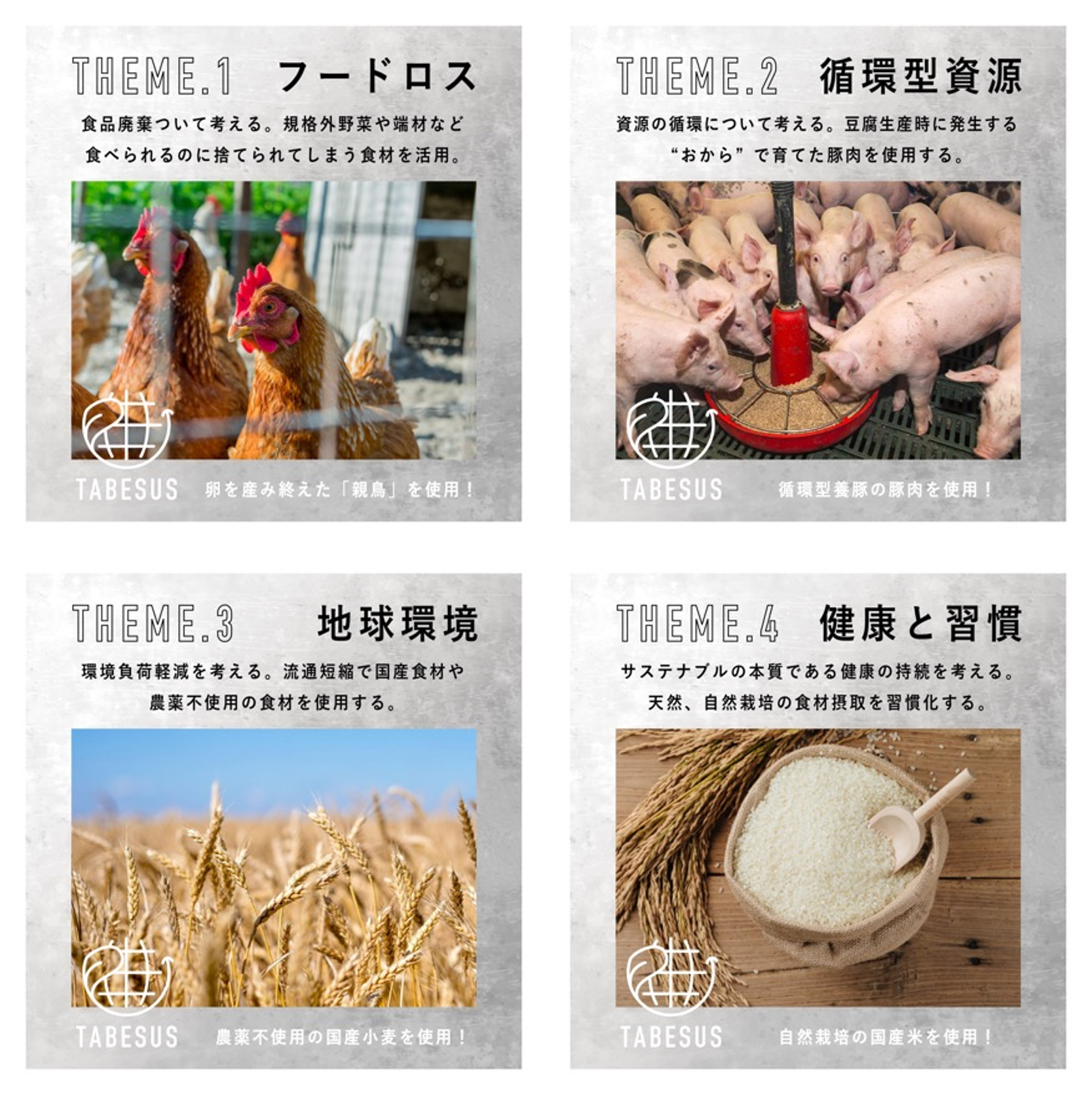 近年、様々な国や自治体や企業などがSDGsへの取り組みが活発になる中で、個人単位では多くの人がそれを行動に移せていないのが現状です。そこで「誰もがあまり気張らずにワンアクションで簡単にSDGsへ参加できて、もっと自分ごと化してもらえる方法はないか?」という課題提起から、おいしく食べて、持続可能な社会を目指す、サステナブルグルメ専門店「TABESUS(たべサス)」のコンセプトが生まれました。