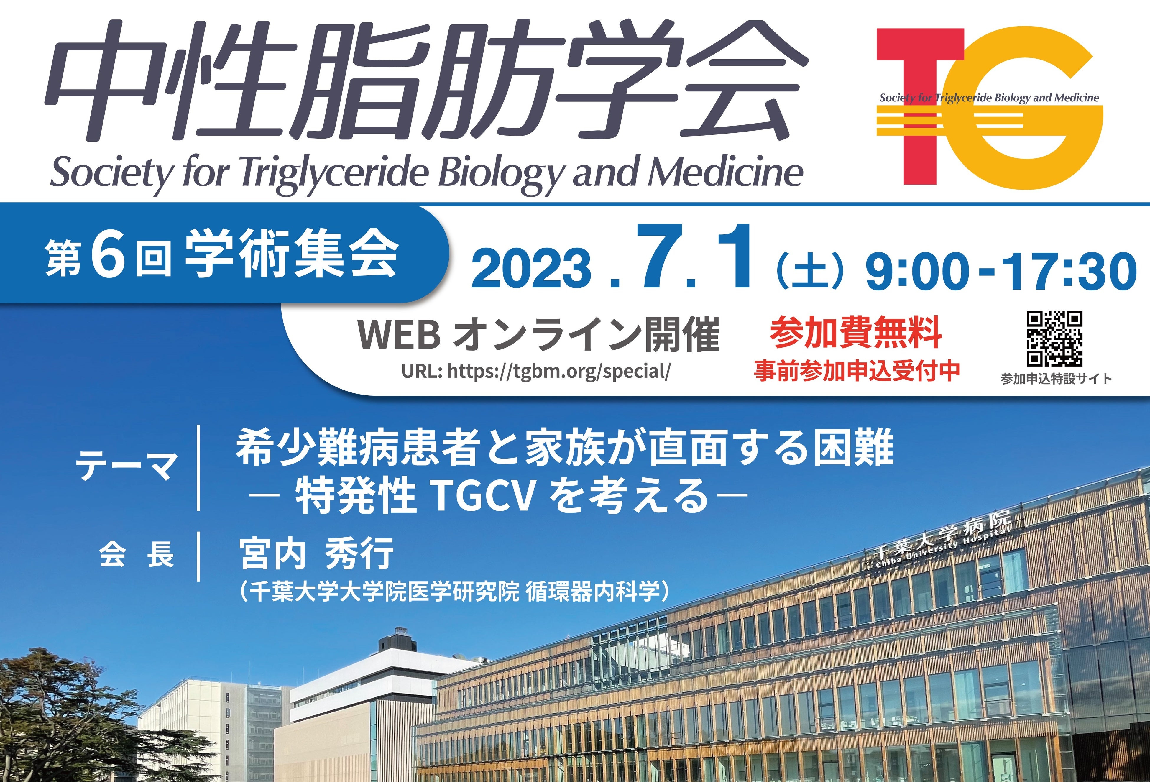 中性脂肪学会第6回学術集会2023年7月1日(土)9:00~17:30@WEBライブ配信(参加費無料)