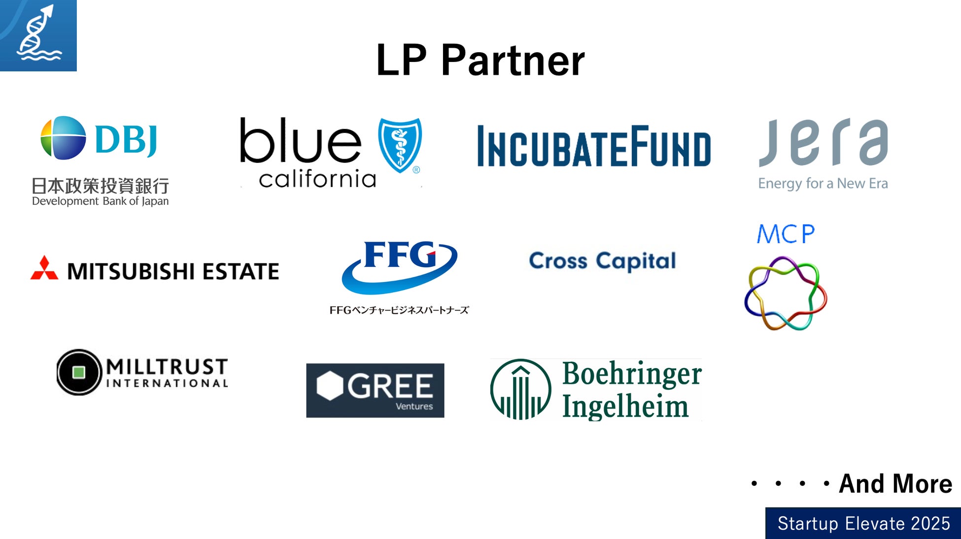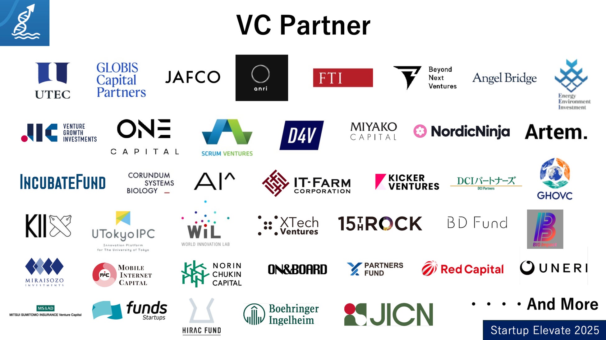 現時点で、スポンサー企業(24組織)、VCパートナー(32社)、LPパートナー(12社)、企業パートナー(20社)、アカデミア・アクセラ・プロフェッショナルパートナー(15団体)。