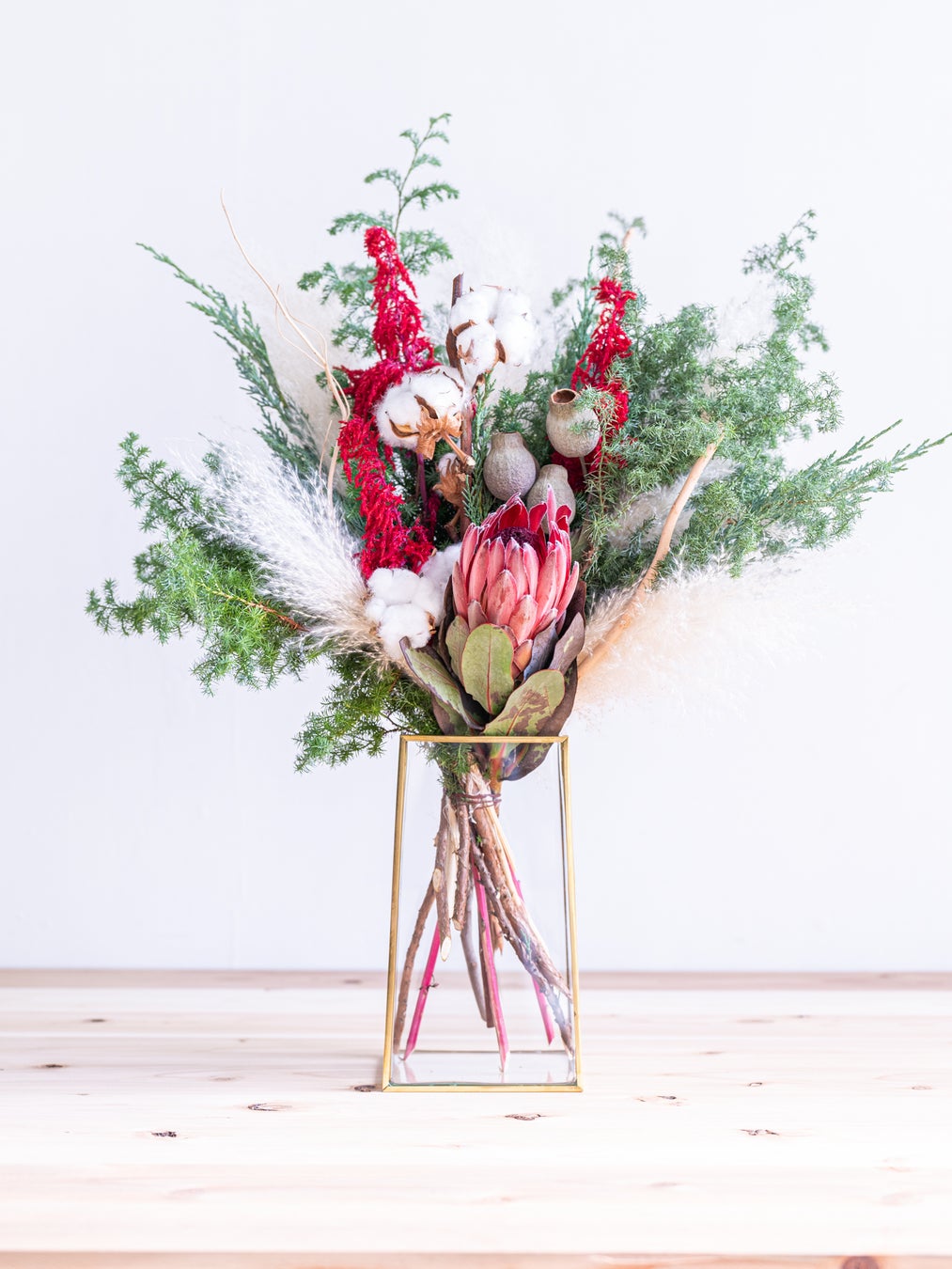 プロテア、コットンの大きなドライフラワーアレンジ 19,800円 (税込)