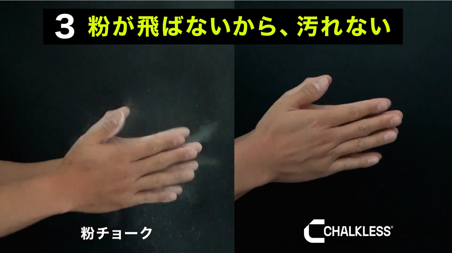 手につけた瞬間から効果を発揮できるのも特徴の1つ。液体チョークのように乾くまで、待つ必要がありません。チョークレスは手につけた瞬間から効果を最大限発揮します。