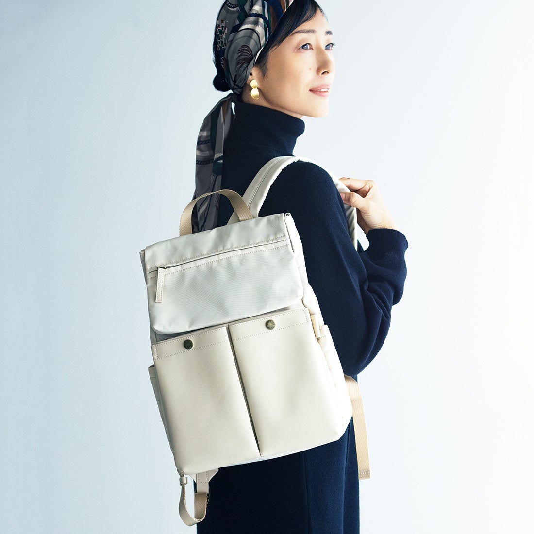 大人の上品リュックが スタイルをシャープに見せてくれる
