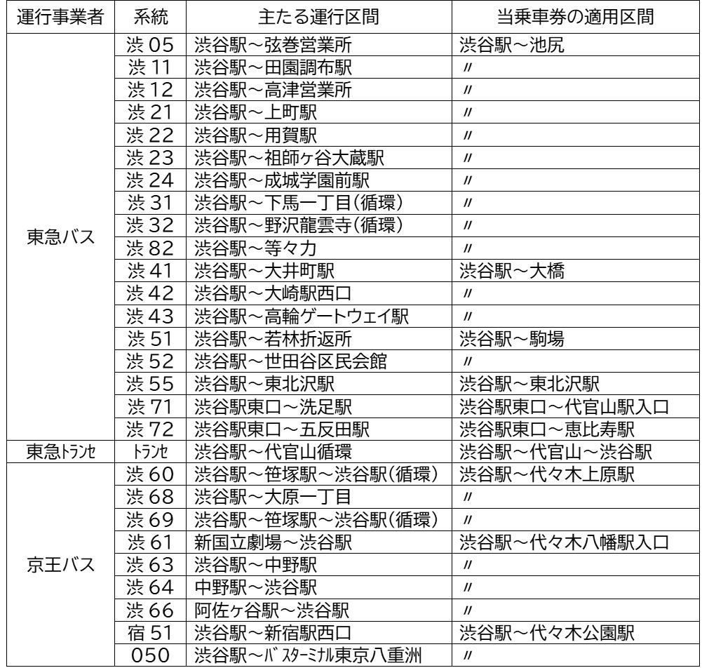 ※区間内乗り降り自由(東急バス、京王バス以外のバス会社は利用できません)