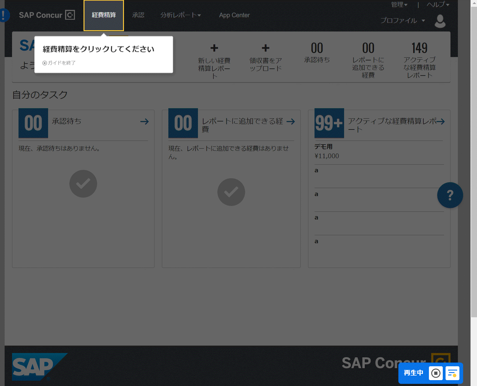 <経費精算システムConcurでのテックタッチ導入画面イメージ>