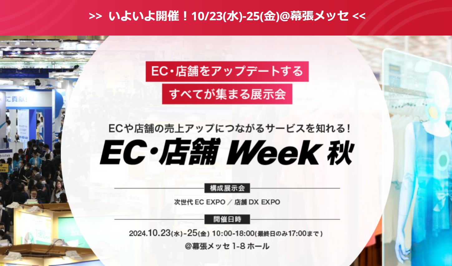 メグリ株式会社は、2024年10月23日(水)から25日(金)まで幕張メッセで開催される「EC・店舗Week【秋】」に出展いたします。