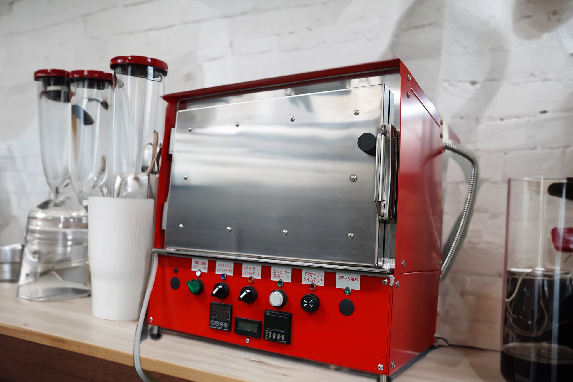商談を重ねる中、マイウェイオーブンの小型化を望むお声を多くいただいた事から、『マイウェイオーブンミニ』を開発しました。『マイウェイオーブンミニ』は、家庭用電源(100V)で使用できます。またサイズも家庭用電子レンジより一回り大きい程度ですので場所を選ばないのが最大の特徴です。