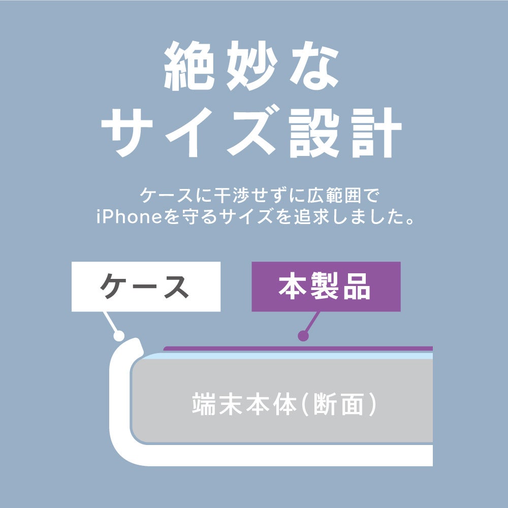表示画面端までしっかり守るのにケースとも干渉しない、絶妙なサイズ設計です。好みのケースと合わせて楽しむことができます。
