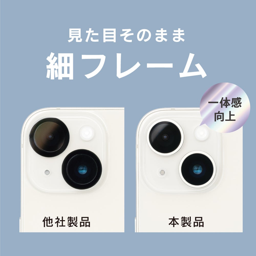 レンズもカメラユニットも一緒に守れるカメラレンズ保護ガラス。フラッシュの映り込み防止のフレームが細いため、iPhoneとの一体感が生まれます。