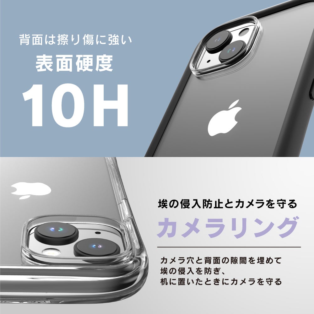背面は表面硬度10Hで傷つきにくく、埃の侵入を防ぐカメラリングで机に置いたときにカメラが直接触れるのを防ぎ、レンズを守ります。