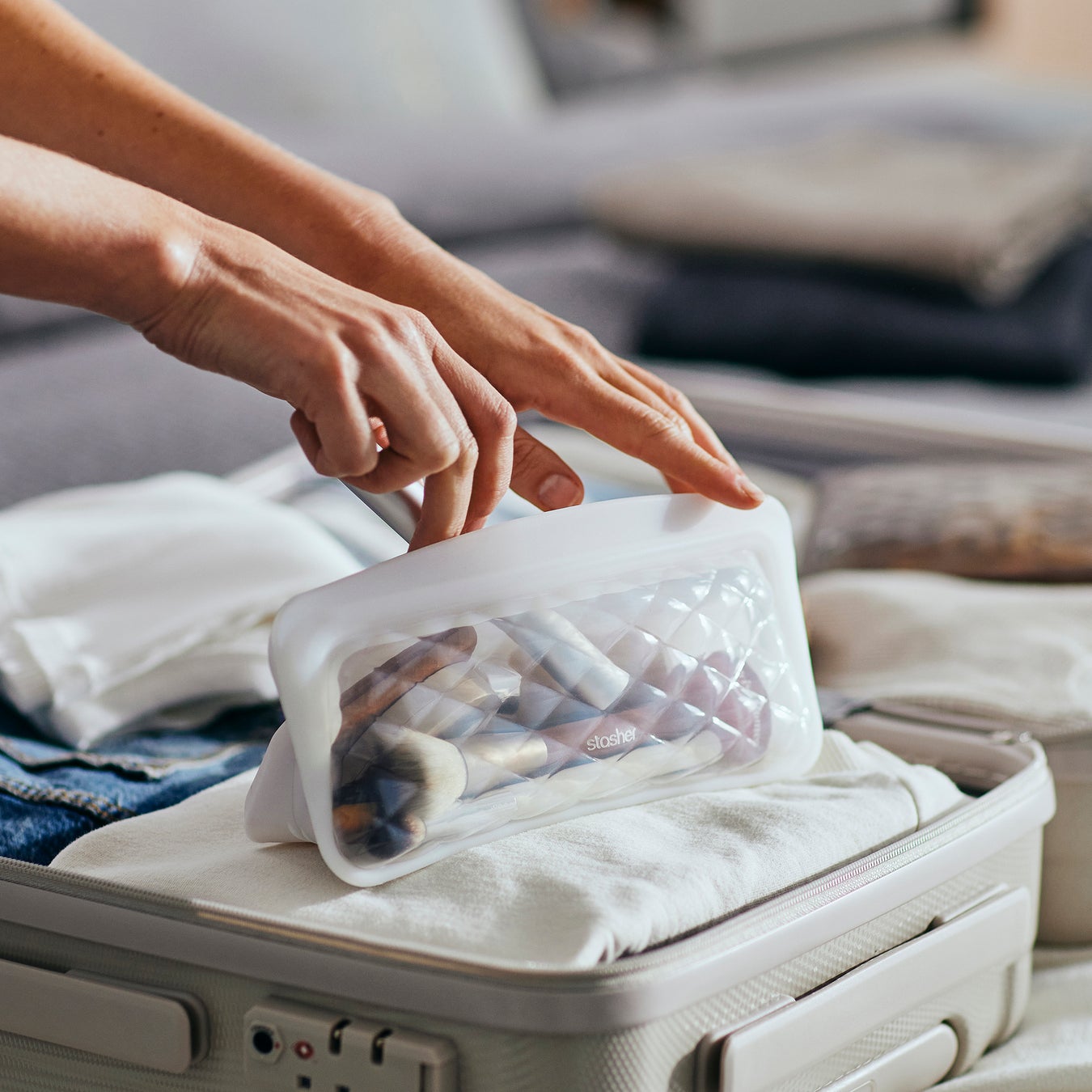 密閉性の高いピンチロックシステムによりリキッドファンデーションなど「BEAUTY BAG」からの液漏れを防ぎ、アクシデントが起こった際も他の荷物を汚す心配がありません。