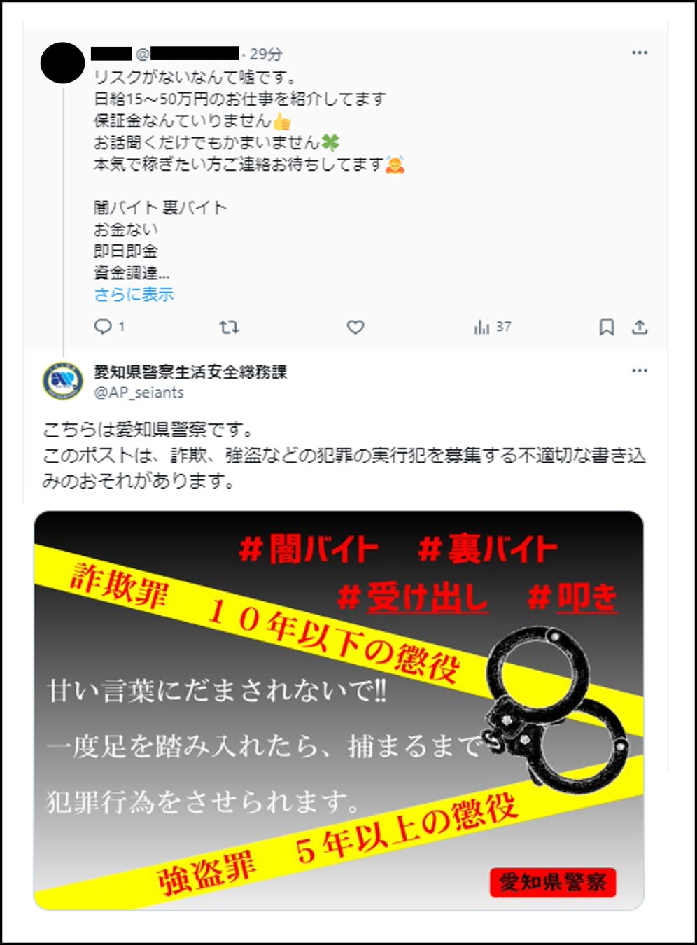 パソコン業務自動化ロボットRPA「アシロボ」を活用し、SNS上の違法な闇バイト募集投稿等の検出・警告を実施